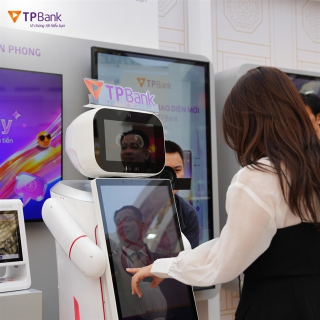 ![]() Visitors experienced AI Robot T'Aio - a virtual assistant launched by TPBank in 2017 during a recent event in Hà Nội. — Photo tapchikinhtetaichinh.vn |