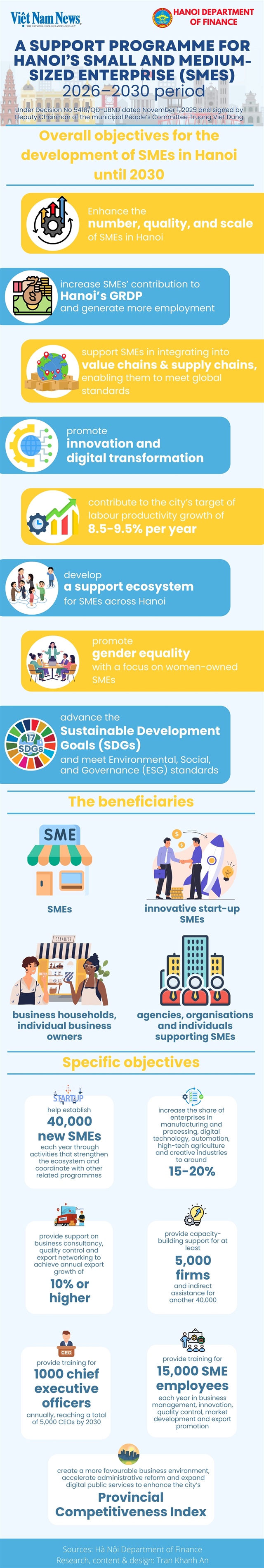 Hà Nội is rolling out an ambitious programme for 2026-2030 to support the development of small and medium-sized enterprises (SMEs), aiming to foster innovation, strengthen competitiveness, and promote private-sector growth for a more sustainable economy.
