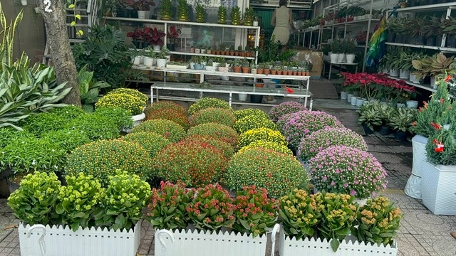 On streets like Phạm Văn Đồng, Mai Chí Thọ, Thành Thái and Bắc Hải, they are selling ornamental flowers such as Thai apricot blossoms, Thai chrysanthemums, orchids, roses and hydrangeas and potted trees like kumquats, oranges and tangerines.