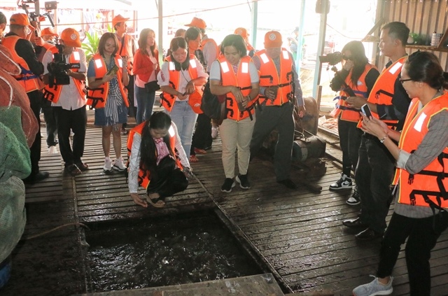 Tourists visit the Út Thuận fish farm in An Giang Province. — VNA/VNS Photos |