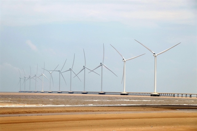 Wind turbines operate along the coastline of Trường Long Hòa Ward in Vĩnh Long Province. — VNA/VNS Photo Chương Đài |