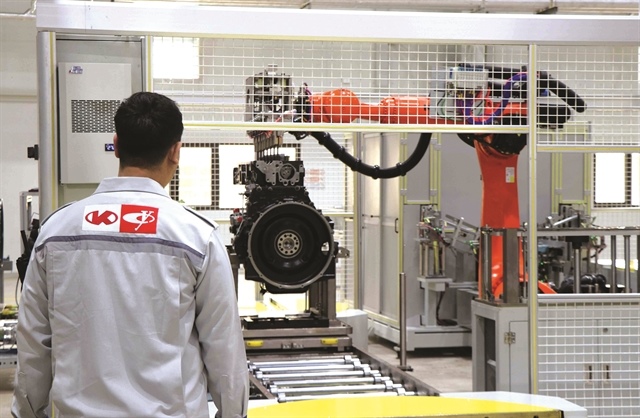 Robots operate in the engine manufacturing process at the Kim Long Motor Company in Huế. VNA/VNS Photo |