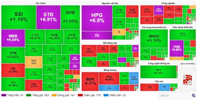 As for materials stocks, Hoa Phat Group (HPG) and Duc Giang Chemicals (DGC) rose to the ceiling price. Fertiliser producers PetroVietnam Fertiliser and Chemicals (DPM) and PetroVietnam Ca Mau Fertiliser (DCM) posted solid gains of around 4–5 per cent.